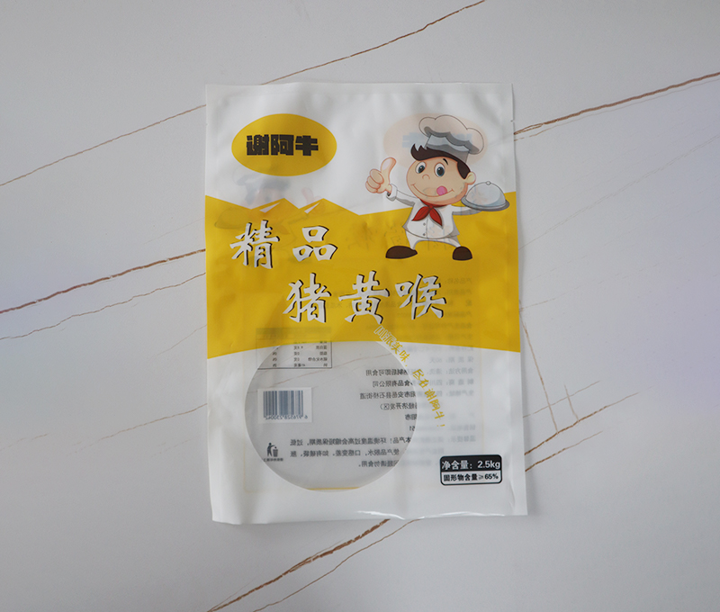 本品选用食品级塑料制作而成,用于包装谢阿牛 · 精品猪黄喉产品,“川派美味,尽在谢阿牛”。